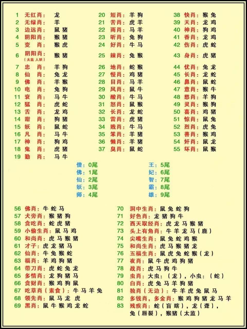 | 地肖: 鼠、虎、蛇、羊、鸡、狗 | |